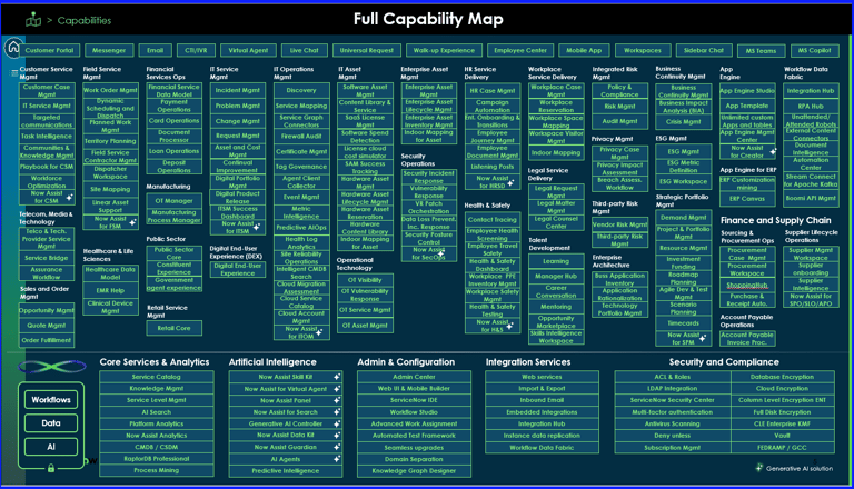 Below is a picture of current ServiceNow platform capabilities and offerings